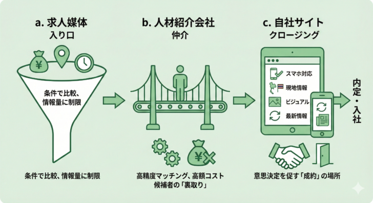 1. 求人媒体は「入り口」、自社サイトは「クロージング」の場所